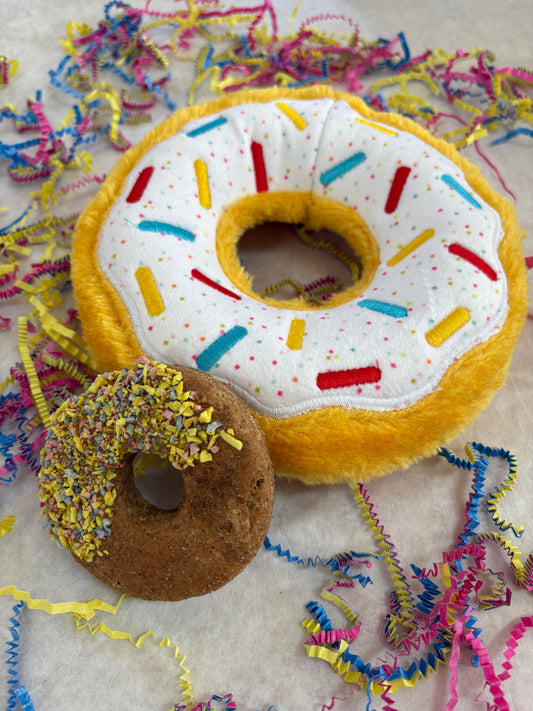 Donut Celebration Box for Dogs - You Choose Number of Donuts + Large Dog Donut Toy