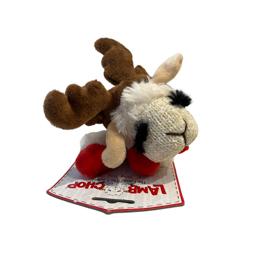 Multipet Holiday Lamb Chop Dog Toy with Antlers- 6"
