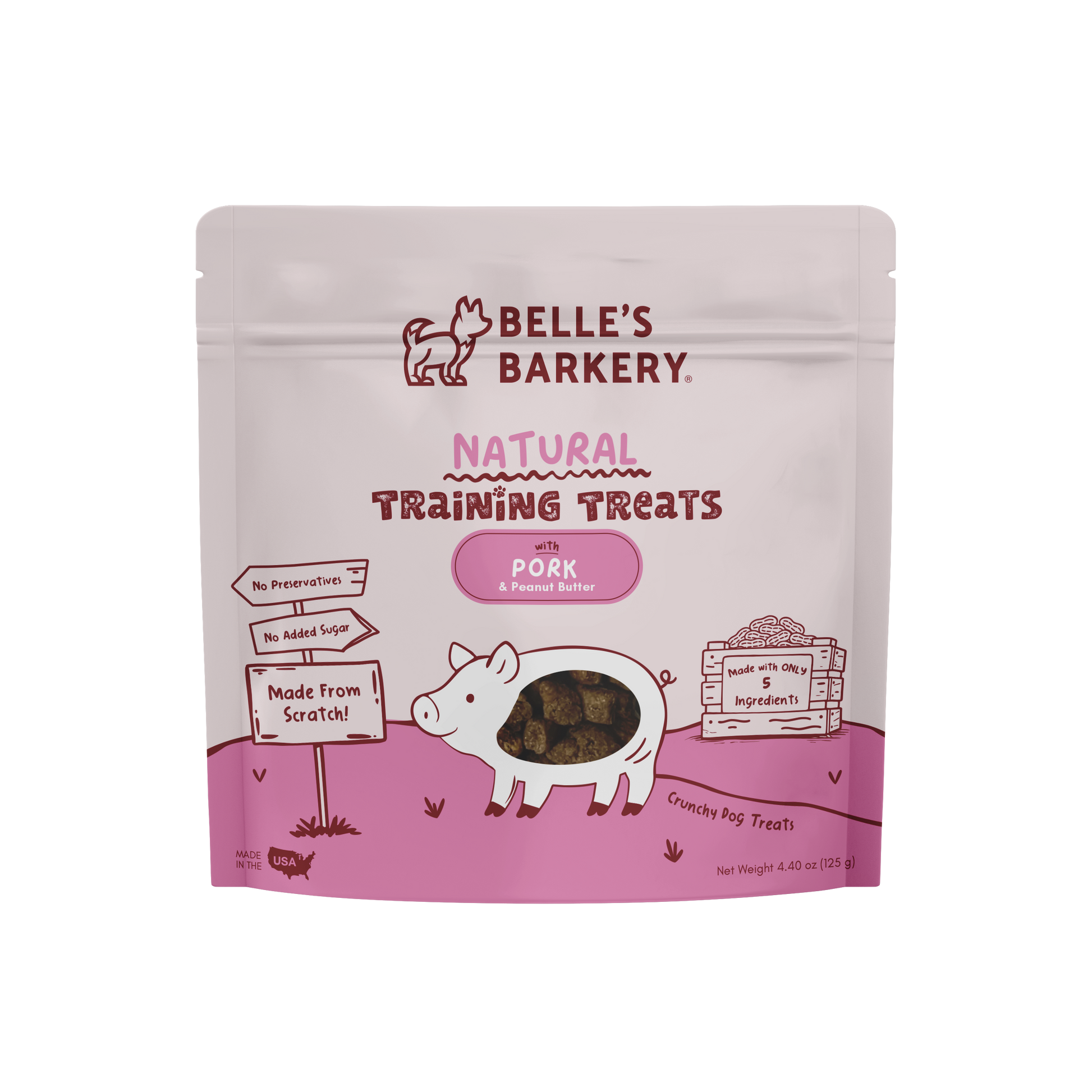 We created the perfect training treat for your pup! These crunchy dog treats are made with real pork and peanut butter. The treats are small in size, but packed full of pork- making them a great training reward!